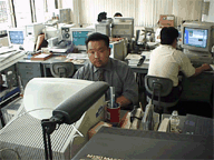 僕の方は TN 氏(写真右)と共に高知市観光課まで赴いて、よさこいの写真をお借りしてきました。上の鳴子は YK 作のコンピュータグラフィックス。なかなかよーできとる。こういうものを作るスキルとセンスがあるだけに、写真は没にしたのだ!(愛情)byリーダー。